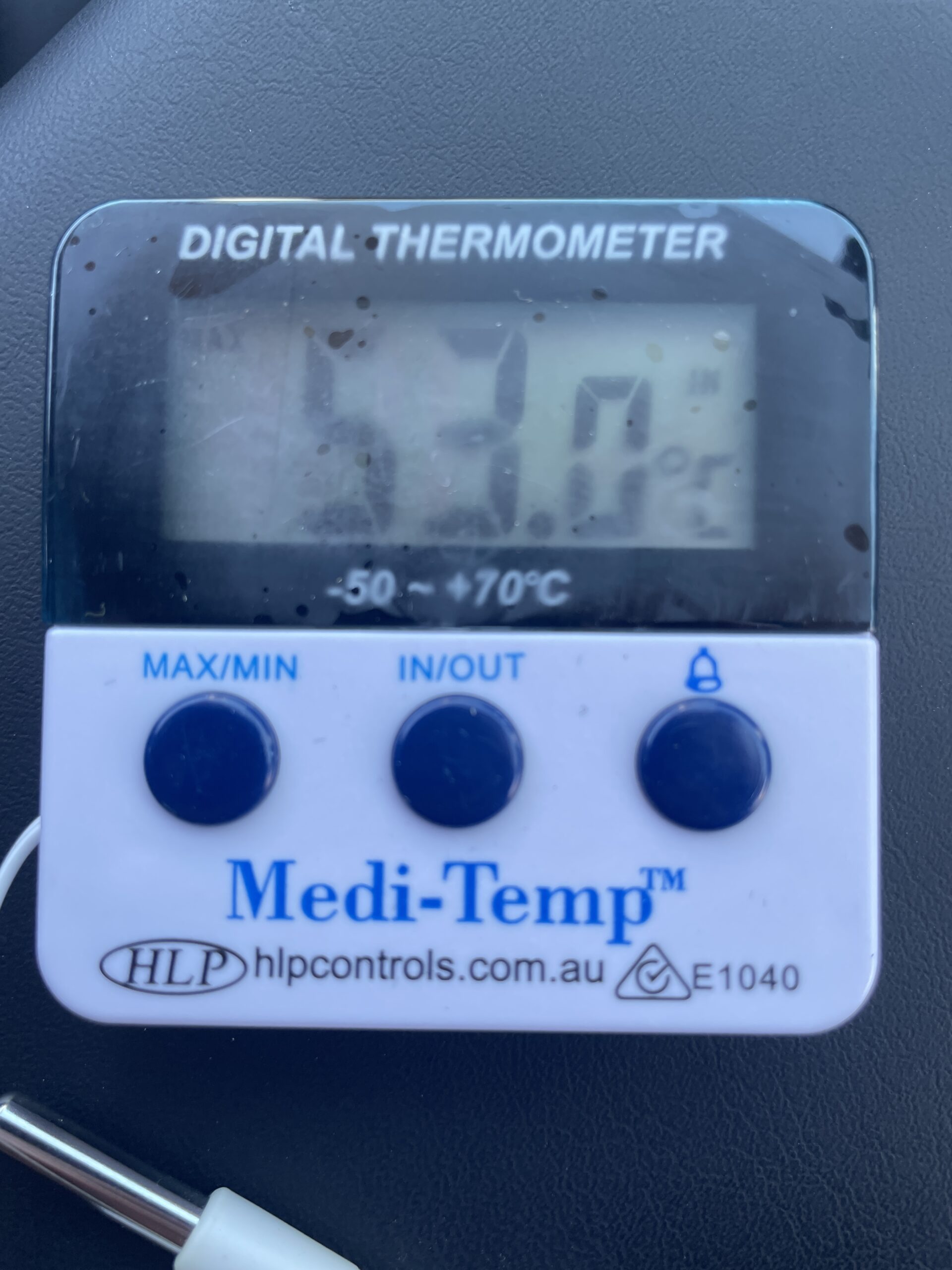 The maximum temperature inside the glovebox was 53°C. That was during a heatwave in Sydney, where the car was parked in the sun on the street all day when the outside air temperature reached 40°C and inside went to 73°C.